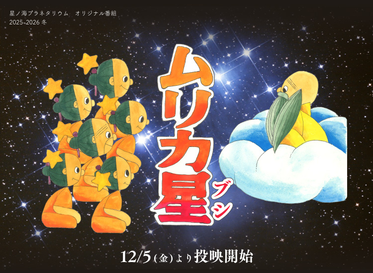 Schedule 今シーズンの上映スケジュール 上映スケジュールを見る 作品一覧を見る News 新着情報 2025/10/21 【お知らせ】年末年始の営業日について 2025/11/17 【イベント】12/25「クリスマス 星降るコンサート in Planetarium」開催 2025/11/17 【イベント】12/20・21「サンタがプラネタリウムにやってくる♪ for kids」開催 2025/11/9 【お知らせ】12/5~ 冬のオリジナル番組「天頂を駆ける星 ムリカ星」開始 2025/11/2 【お知らせ】12/4(木)臨時休館 2023/06/15 【お知らせ】ふるなびトラベルポイントご利用いただけます 詳しく見る